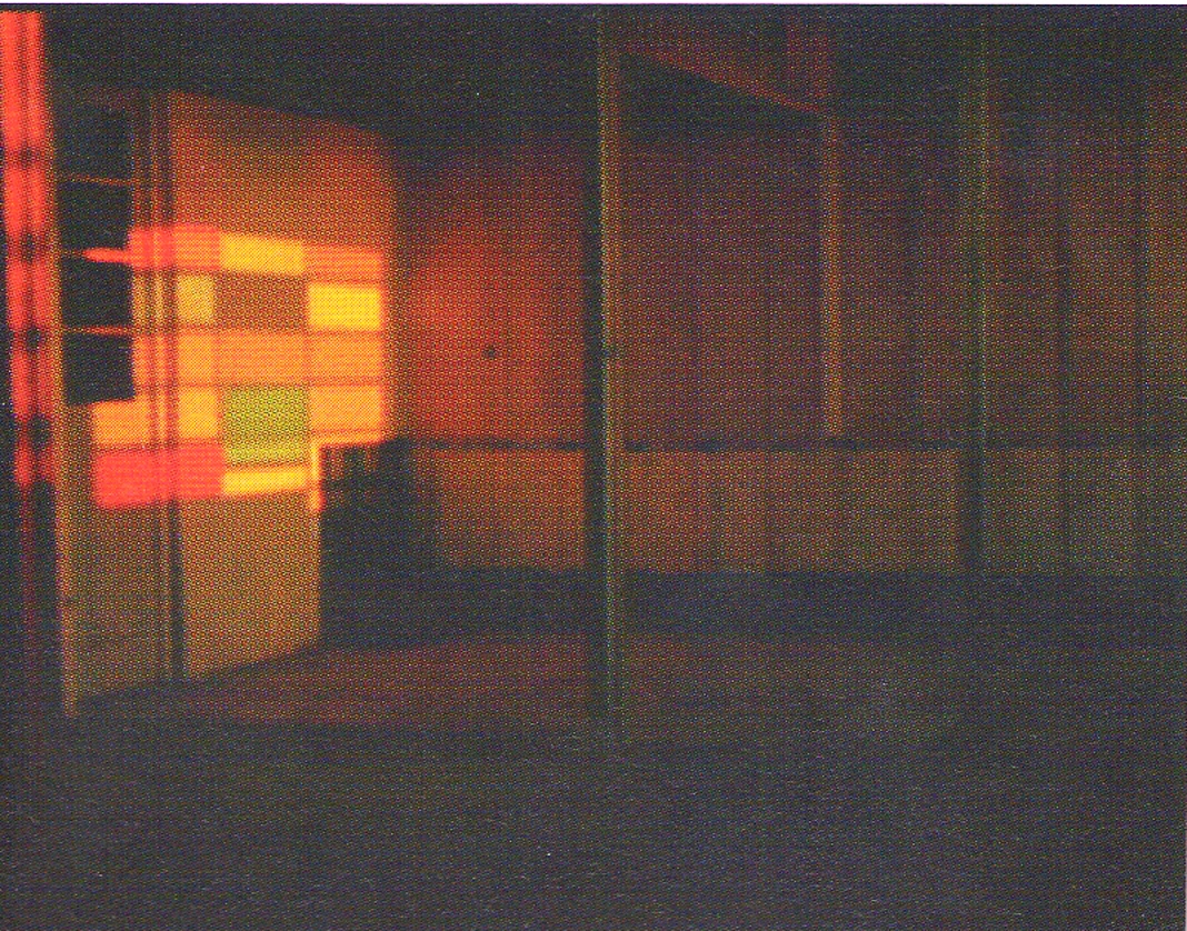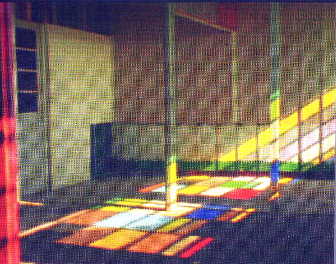 Na instalação, a artista utilizou  filtros coloridos transparentes nos vidros das janelas do espaço que formavam projeções a partir da luz solar que incidia no recinto. As luzes “atravessando” a geometria das janelas “pintavam” o ambiente formando diferentes desenhos no decorrer do dia, de acordo com a posição da luz natural. A artista, sobre a investigação da luz, declara que “a luz e o ar são os elementos que ativam um espaço e fazem surgir ali, um lugar”. (KOCH, 2007).