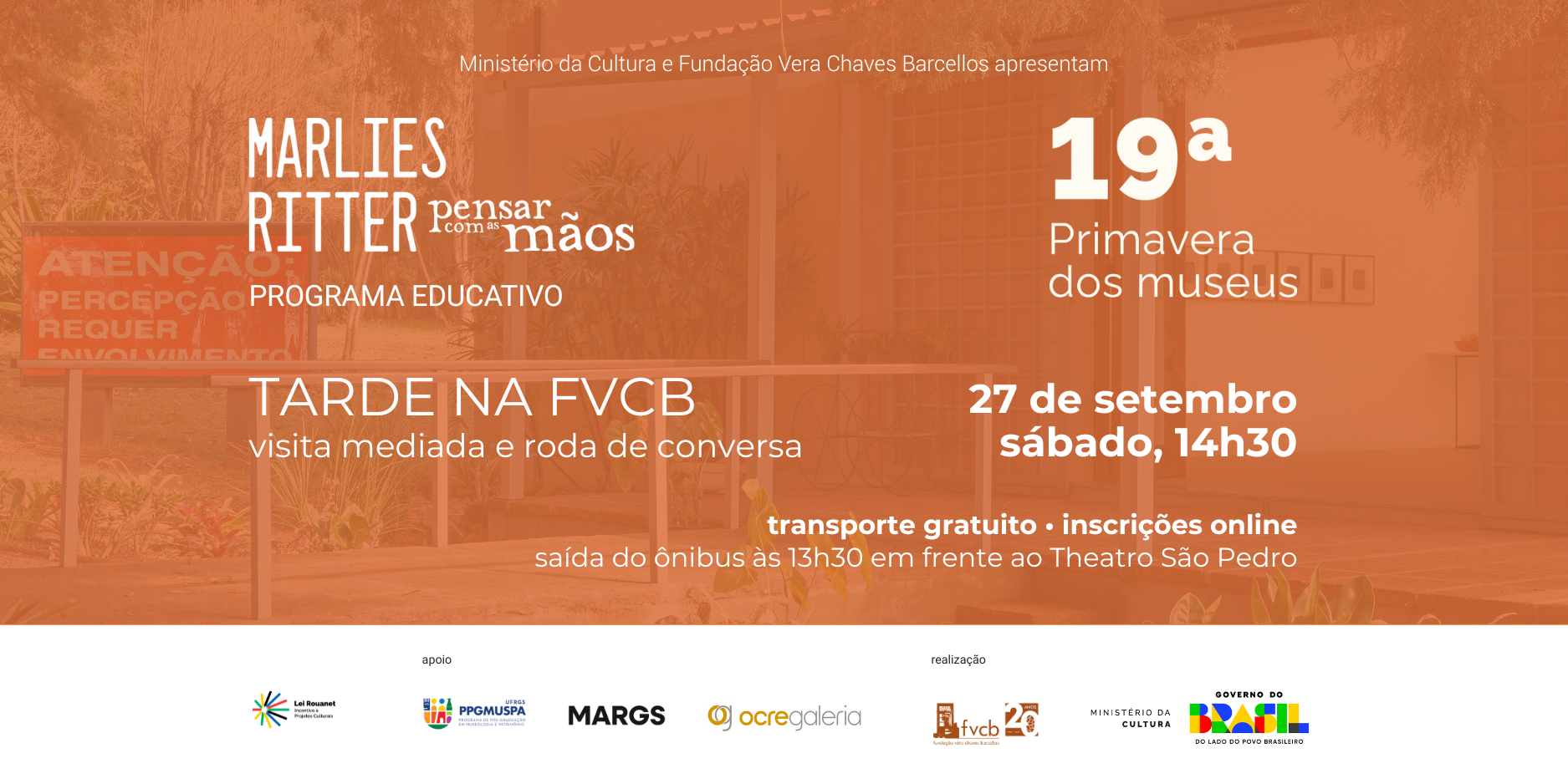 Integrando 19ª Primavera dos Museus e o Programa Educativo da exposição Marlies Ritter – Pensar com as mãos, a Fundação Vera Chaves Barcellos convida o público para uma tarde de atividades em 27 de setembro, sábado, a partir das 14h30.