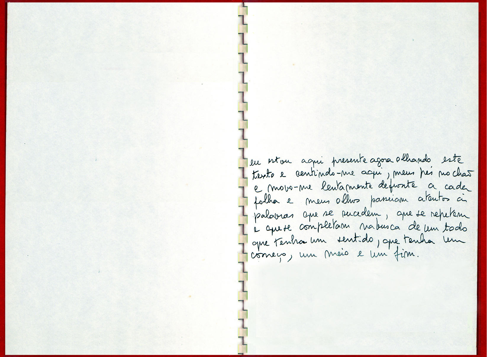 A programação que conta com a mesa-redonda, performance e lançamento de livros, inicia às 11h, no dia 05/10, às 12h30, acontece a performance da artista Vera Chaves Barcellos. Realizada pela primeira vez em 1979 no Espaço N.O., a artista lê um livro composto por um único parágrafo. Em cada página, a leitura se constitui se repete e se fragmenta. Em suas palavras: “é uma dinâmica de leitura que quebra o encanto do momento, da fruição, de algo que seria único e que não tornaria a acontecer. De certa forma, é também uma metáfora da vida que se leva intensamente e que cada vez, que se reflete sobre ela, deixa-se de viver um pouco”. Além da performance, Vera Chaves Barcellos estará lançando a segunda edição do seu livro, publicado há mais de 30 anos.