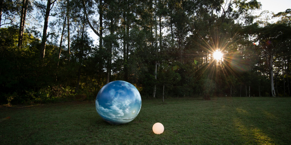 “Em Anã Branca, Bruno Borne apresenta uma mise en abyme, a metonímia levada ao extremo da redundância: uma terra inflável e frágil, iluminada por uma estrela em colapso, massiva e densa. Já em Desenho (para Laura e Munir), Guilherme Dable constrói uma anamorfose espacial, onde a linha — unidade elementar do desenho — torna-se enigma tridimensional, revelando a falibilidade dos sentidos na construção da realidade. Rogério Severo, em Aqui tem água, orquestra tensões, equilíbrios e forças em experimentos sobre a natureza íntima do mundo, por meio de um desenho que extrai suas leis da própria terra. Em 7 Bruxas, Elaine Tedesco delimita a exposição como uma chama suspensa no espaço, quimera entre a fantasmagoria e as armadilhas para pragas; como uma fita de moebius. Por fim, Strages, de Dione Veiga Vieira, introduz a entropia nesse sistema: vestígios de um banquete mítico entre rochas erodidas pelo fluxo de um rio — outro nome do tempo — formam um palimpsesto de ruínas. A exposição Cinco pontos de orientação propõe uma trilha por obras que operam como instrumentos de aferição do mundo — experimentos poéticos que tramam as bordas entre arte, ciência e fabulação.” (Trecho do texto curatorial).