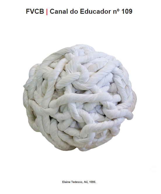 O Canal do Educador nº 109 traz na capa a obra , da artista Elaine Tedesco. O trabalho, que pertence à Coleção Artistas Contemporâneos do Acervo da FVCB, está atualmente em exibição na mostra coletiva Aã, em cartaz na FVCB. A partir da obra, o informativo aborda a materialidade na arte contemporânea. A biografia da artista, indicações de textos, links para pesquisa também integram o boletim. A programação paralela à mostra é um dos destaques deste Canal, com eventos em Porto Alegre e em Viamão.  O informativo destaca também a programação expositiva da região.