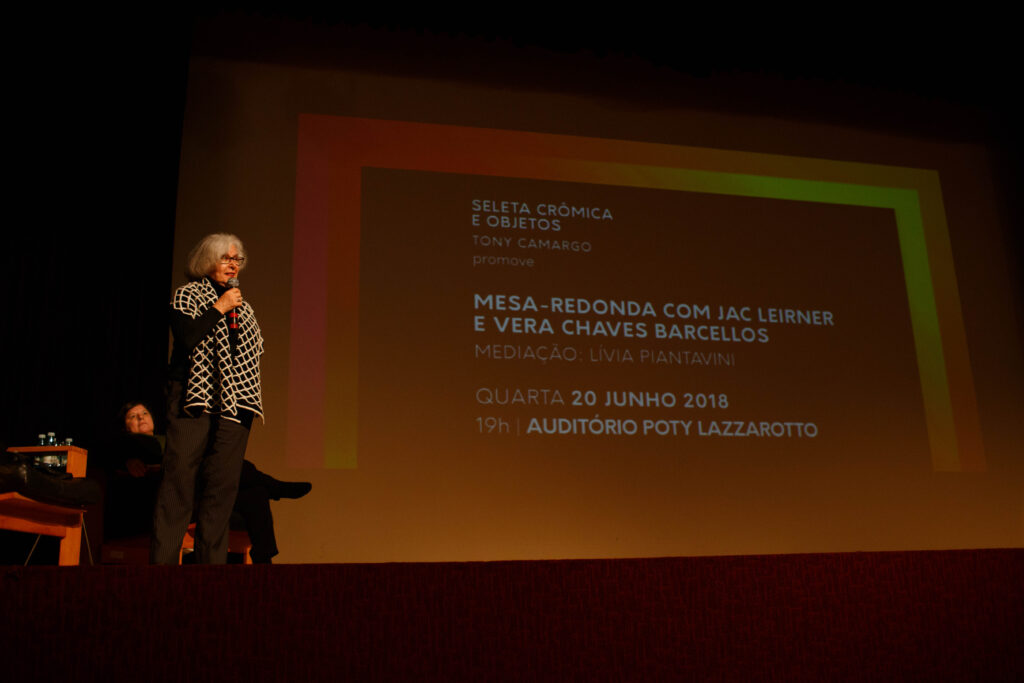 Registros da mesa-redonda que a artista Vera Chaves Barcellos participou no Museu Oscar Niemeyer