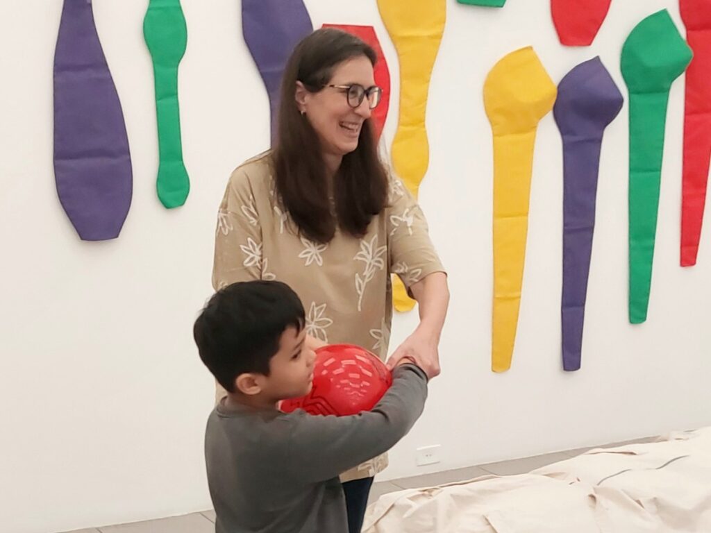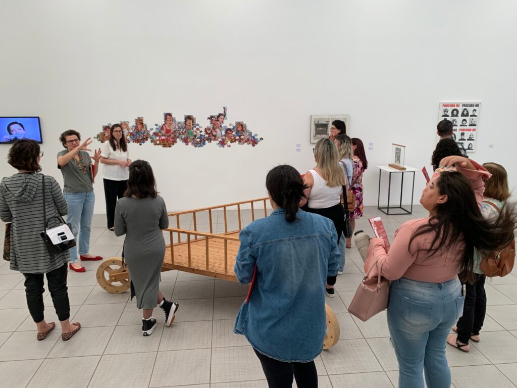 Três turmas de Educação Infantil da EMEI Gaúcha, de Viamão, participaram de uma série de atividades ao longo da visita realizada à exposição Eloquência e Eficácia: figuras do discurso, nesta terça-feira, 24/10, na Sala dos Pomares da FVCB.