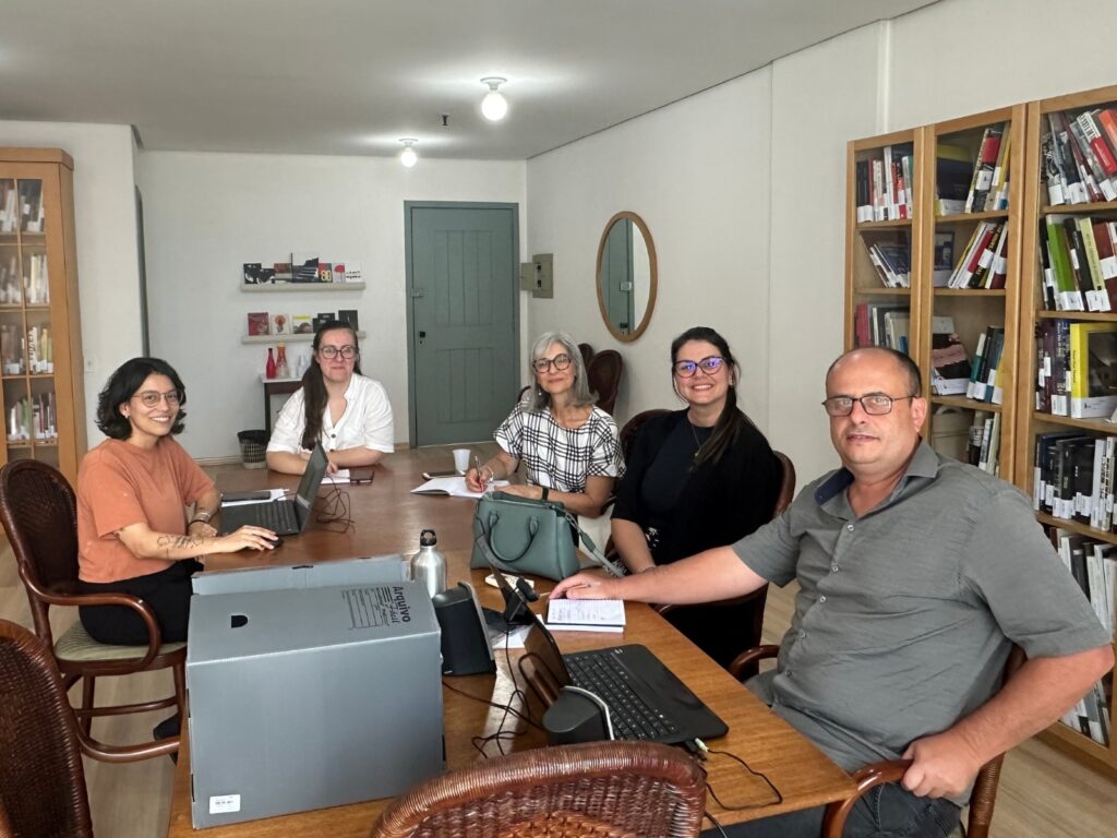Na tarde desta terça-feira, 23/01, a equipe do Centro de Documentação e Pesquisa da FVCB recebeu as professoras Maria Stephanou (PPGEdu/UFRGS) e Vanessa Teixeira Aquino (PPGMUSPA/UFRGS), atuantes na coordenação do Sépia, grupo de pesquisa e extensão transdisciplinar dedicado à conservação e pesquisa de acervos documentais.