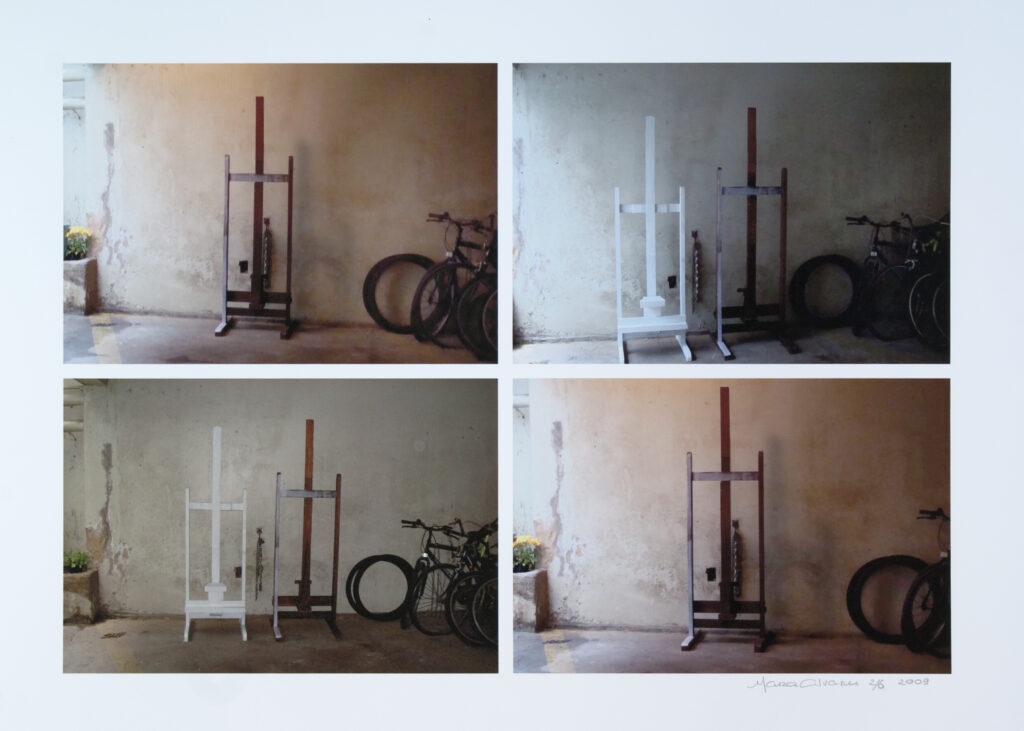 Sem título (cavaletes), 2009, de Mara Alvares (Porto Alegre, 1948), está em exibição na mostra Haverá consequências (curadoria de Bruna Fetter), na Sala dos Pomares da Fundação Vera Chaves Barcellos, em Viamão.