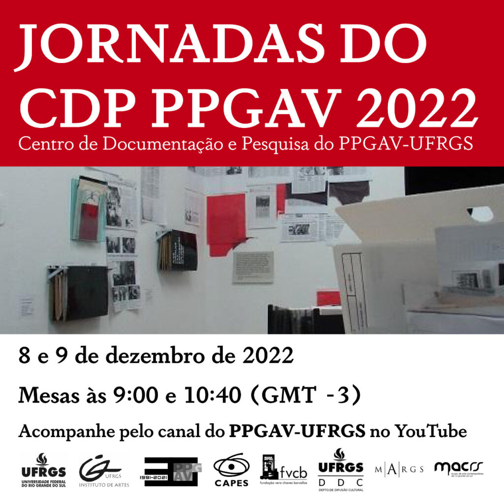 Tendo como um dos pilares de atuação a preservação de acervo documental em arte contemporânea, a Fundação Vera Chaves Barcellos é uma das instituições apoiadoras das Jornadas do CDP PPGAV 2022, evento online e gratuito que ocorre nas manhãs de quinta e de sexta-feira, 08 e 09/12.
