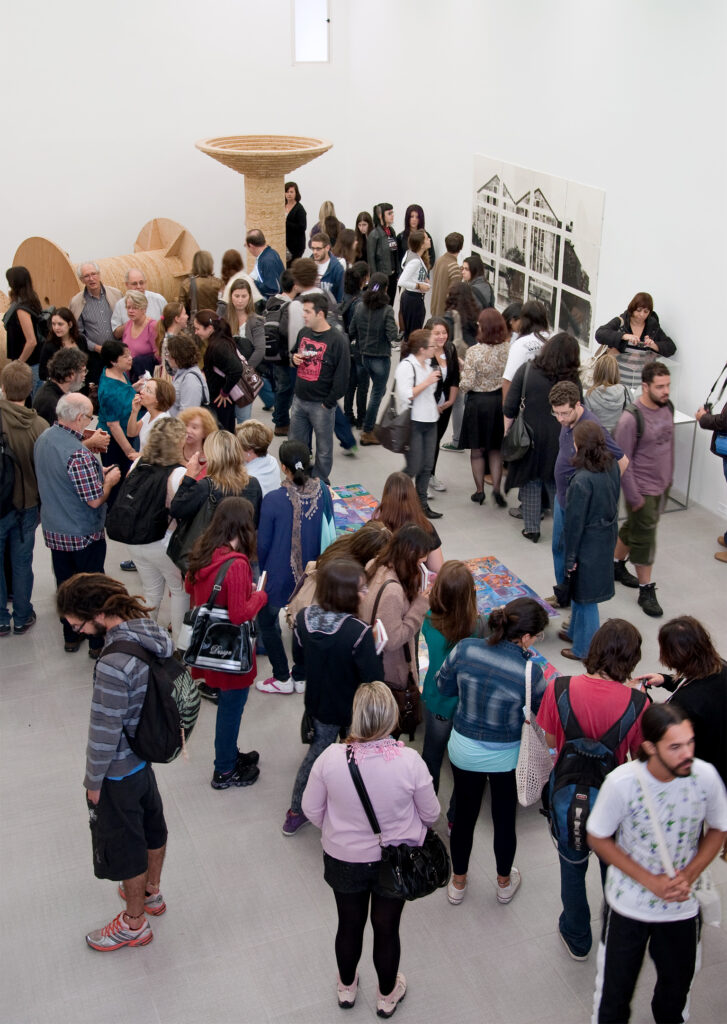 A Sala dos Pomares da FVCB ficou pequena diante do imenso grupo de estudantes e professores de artes visuais da UFPEL vindos especialmente para a abertura da exposição Des|Estruturas, sábado, dia 14 de abril