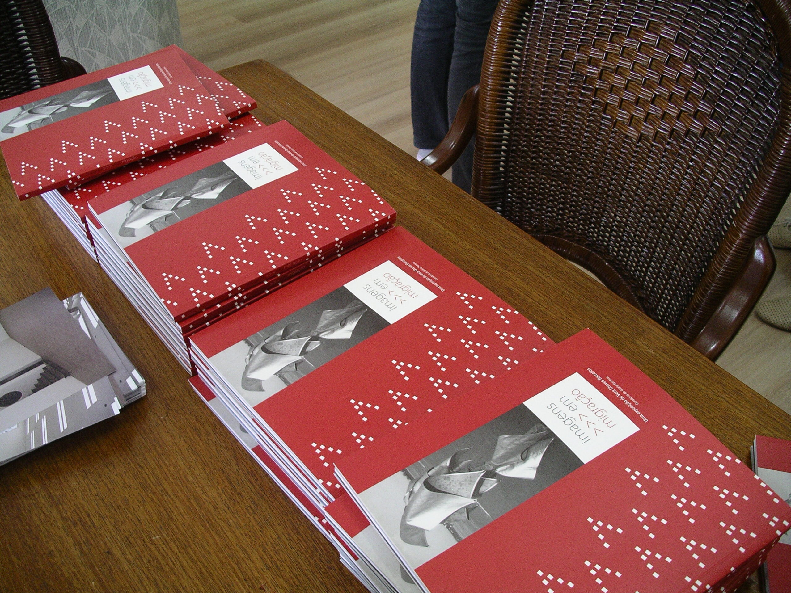 Durante a visitação, os estudantes receberam o catálogo Imagens em Migração, referente à exposição realizada no MASP em 2009 pela artista Vera Chaves Barcellos.