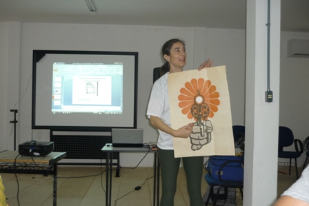 Houve também a distribuição do material pedagógico da 7ªBienal do Mercosul, gentilmente cedido pelo projeto educativo da Bienal aos nossos professores. Comentou tb sobre o tema ironia na arte contemporânea fazendo pontes entre as obras da exposição em exibição na Sala dos Pomares e suas possibilidades pedagógicas.