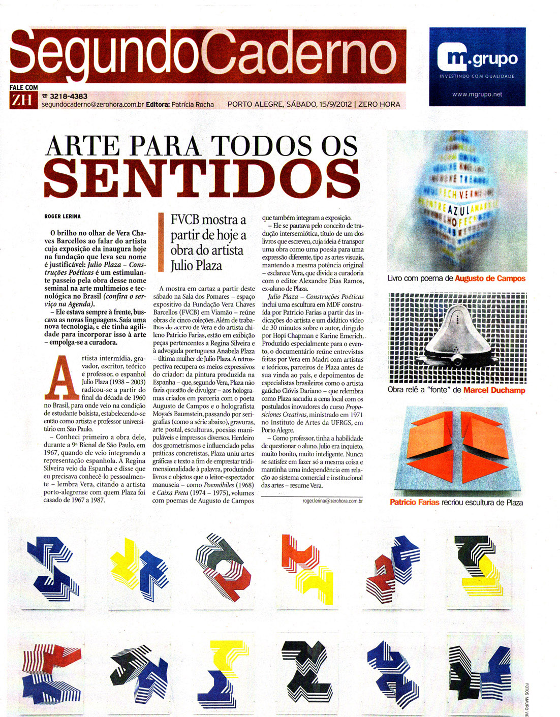 Com matéria de Roger Lerina a exposição Julio Plaza construções poéticas é capa do Segundo Caderno – Zero Hora.