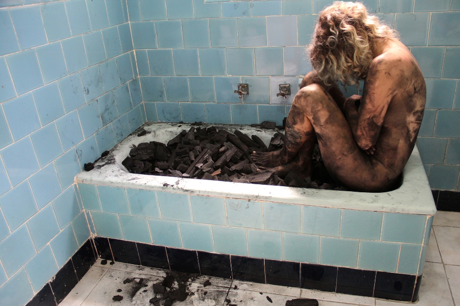 Uma foto performance da artista Carla Borba, intitulada de Salles dês bains III, do ano de 2012.