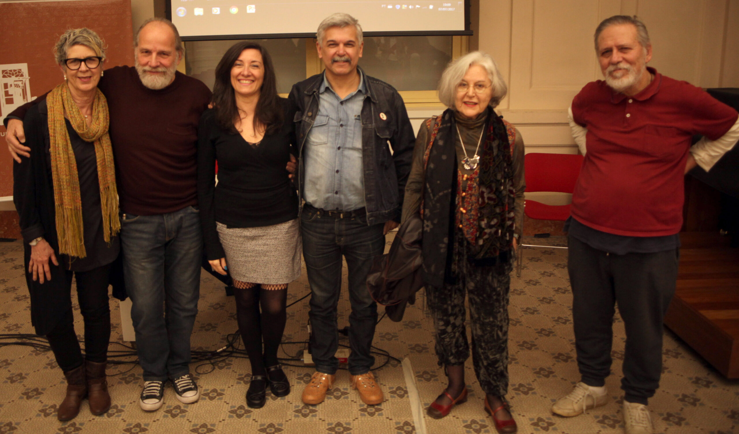 Da esquerda para direita: Fernanda Cony, Clóvis Dariano, Ana Albani de Carvalho, Telmo Lanes, Vera Chaves Barcellos e Carlos Asp. Foto: Hopi Chapman.