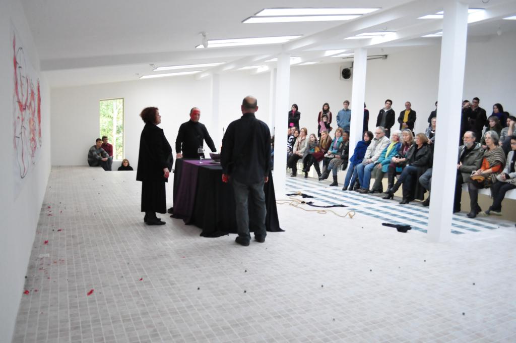 A performance Transversal do Tempo inaugurou o novo prédio da reserva técnica da FVCB na tarde do último dia 28. Um grande número de pessoas foi  assistir a performance de Carlos Wladimirsky acompanhado de Maria Cristina Rosa e Rogério Nazari e conferir as novas instalações destinadas ao acervo.  A performance-catarse foi encenada em forma de  ritual de purificação em que os participantes trataram de exorcizar memórias afetivas de suas trajetórias de vida tendo o fogo como principal elemento transformador. O público acolheu com entusiasmo e ainda deu uma última olhada na exposição Des|Estruturas, encerrada no mesmo dia.  Muitas presenças conhecidas, confira nas fotos.